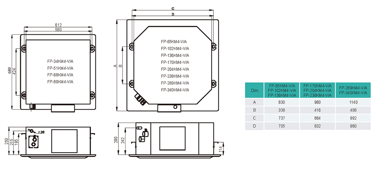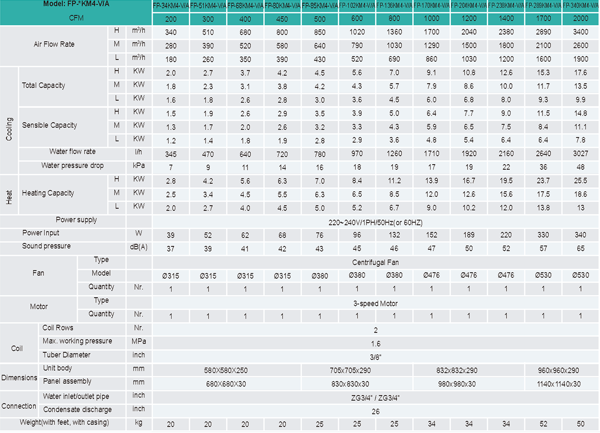 Suitable for hot/chilled water system, ceiling installation;
